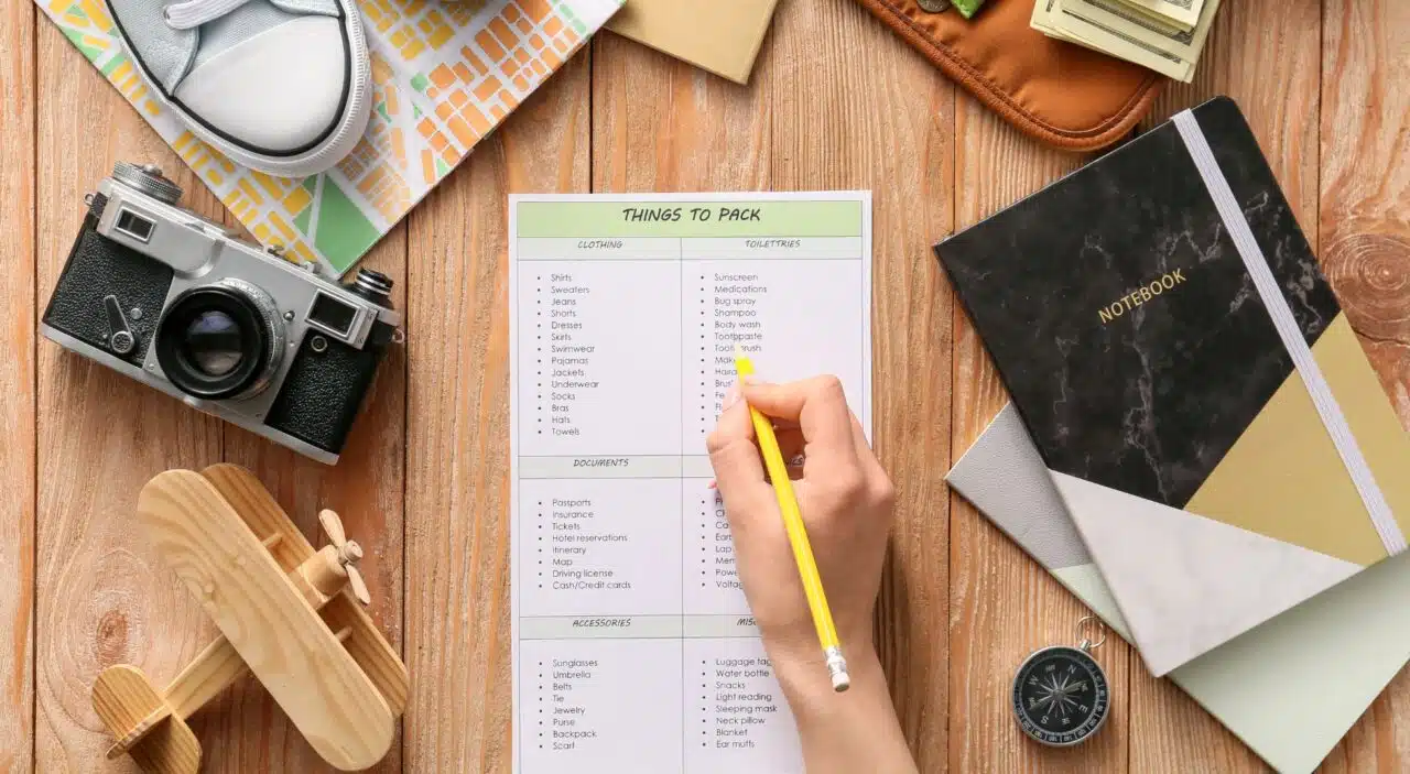 A packing app can help you customize your packing list for each trip, or you can do this manually, but it’s best to break your list into categories, like essentials, clothes, personal care items, and entertainment. Essentials should be at the top of your packing list with items like travel documents and toiletries that can’t be replaced, like medication or prescription glasses/contacts. Basically, if you can’t buy it at your destination, make sure it’s first on your packing list.