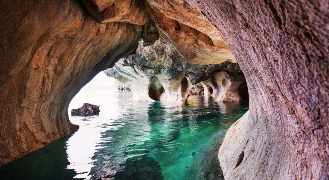 The Marble Caves are exactly as the name suggests: caves made of marble. And yet, they’re so much more than those words alone could capture. From an unassuming cliff face outside to stunning marbled walls in shades of blue and purple, entering the Marble Caves feels like entering nature’s cathedral. Gliding through the water maze under the arched ceilings and watching the constant play of light along the cave walls is a feeling close to magic.