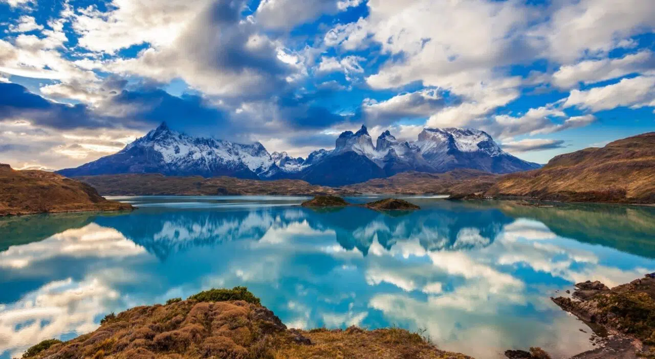 Tucked away in Chile’s Patagonia region, Torres del Paine National Park is a hiker’s paradise with no equal in Chile or anywhere else in the world, for that matter. The park’s beauty is all in the name; Torres is the Spanish word for “towers,” while paine, though it sounds like “pain,” is actually the Teheulche word for “blue.” And once you see the park for yourself, you’ll understand just how accurate the name “Towers of Blue” really is. Mountains of gray-blue granite pierce the sky, dominating the view of Torres del Paine and creating a breathtaking panorama that gives visitors a perfect introduction to the park.